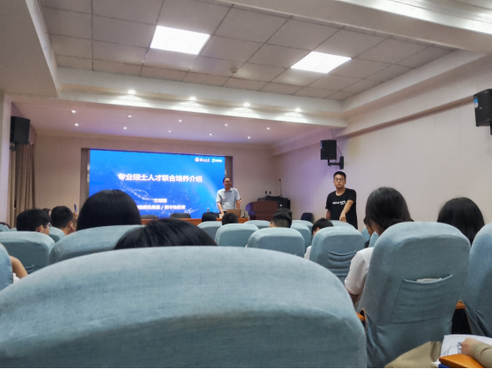 会议伊始,中地数码集团方总为现场同学介绍了地信行业发展的现状与趋势,并重点强调了中地数码集团与我院专业硕士人才联合培养的目标、模式、研究领域及相关政策支持情况。中地数码集团是专业从事地理信息系统(GIS)研究、开发、应用和服务的云GIS软件平台和解决方案提供商。随后,学员代表王一涵、王志鹏向同学们分享自己在新中地教育培训的学习感受。