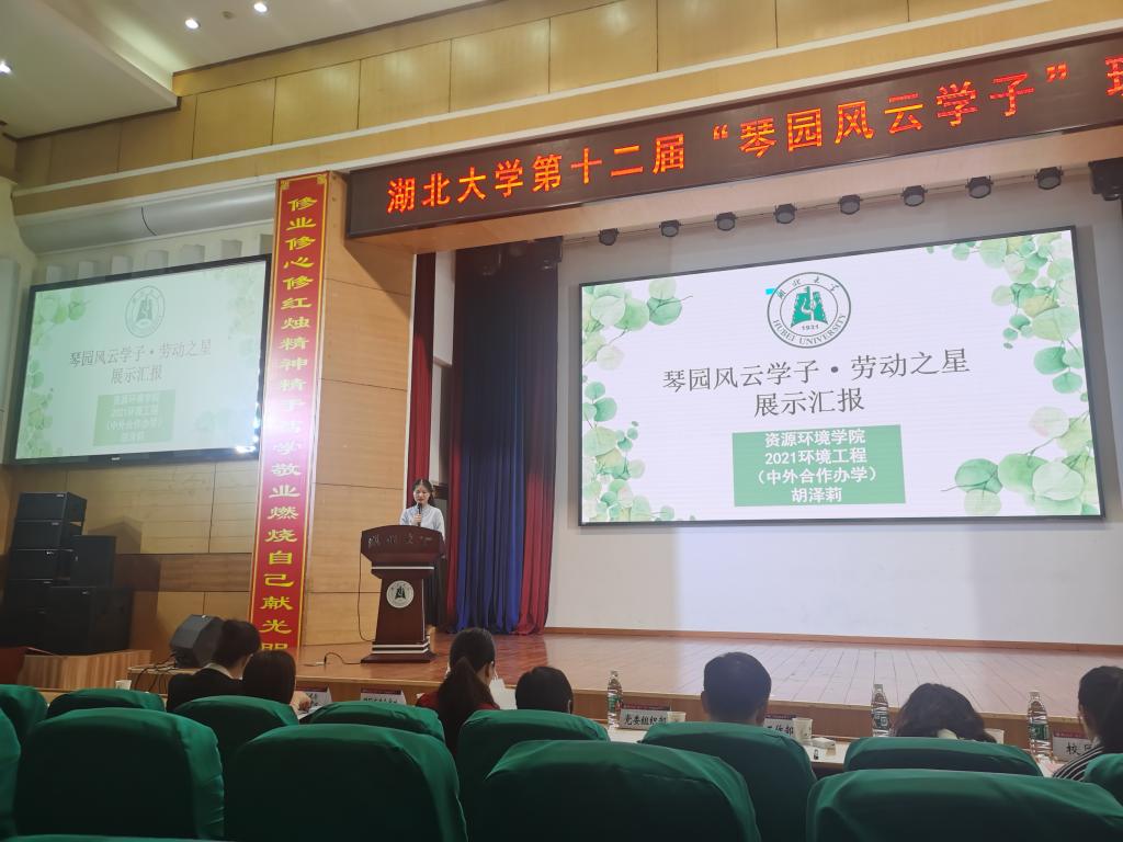 2021级环境工程(中外合作)专业胡泽莉同学以“劳动为犁,深耕韶华”为主题进行展示。她现任xg111net太平洋在线游戏志愿者协会主席、沙湖环保志愿队队长,多次参与志愿服务活动,不仅在志愿服务方面表现突出,学习成绩同样名列前茅,展现了资环学子风采。